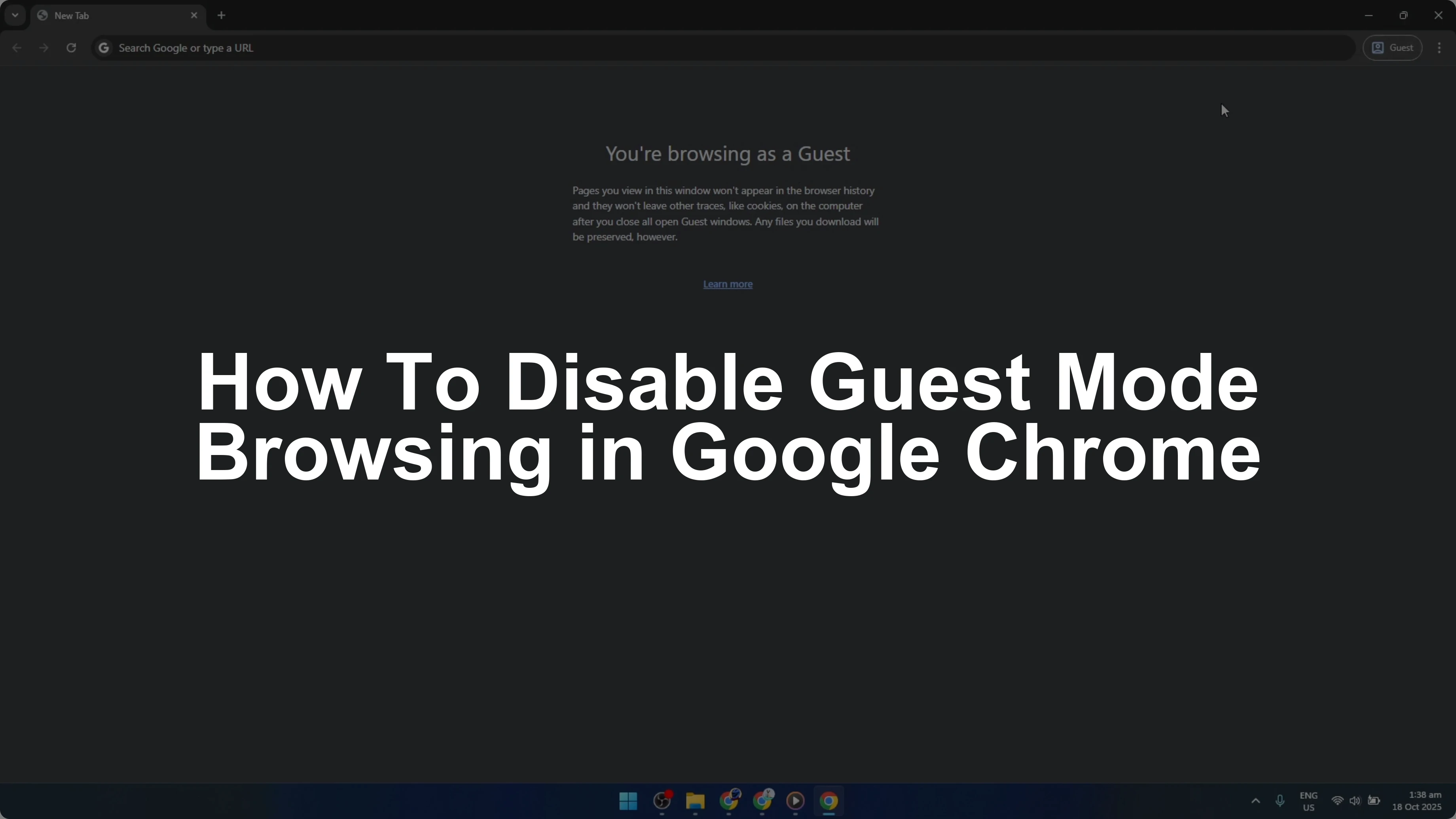 Make sure the Guest label is visible at the top-right of the Chrome window. This confirms you are in guest mode before proceeding.