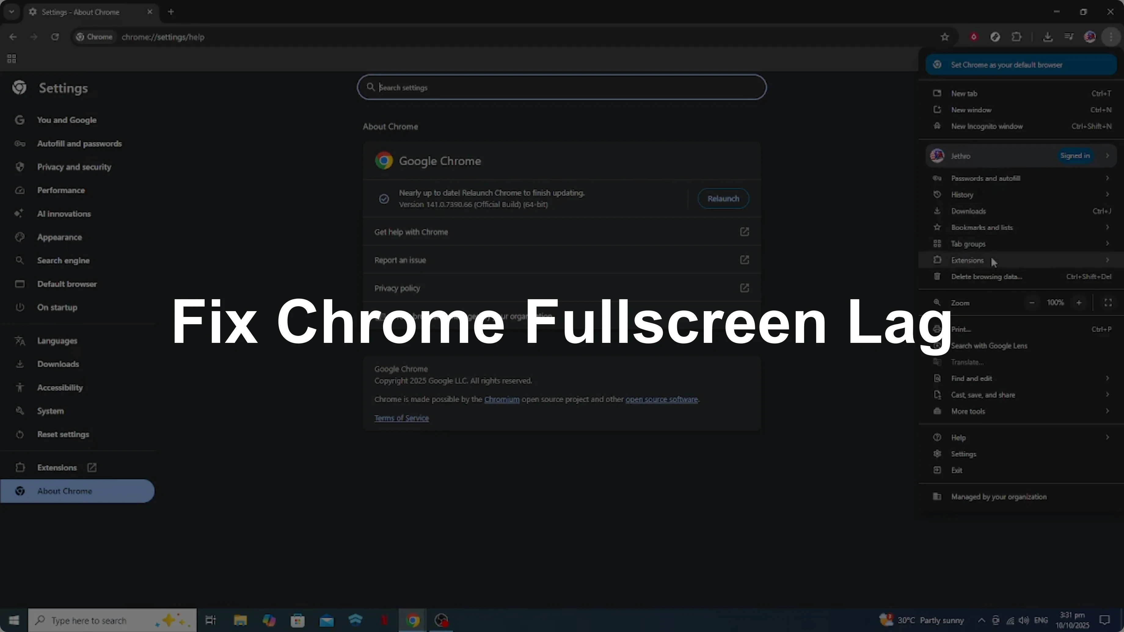Once the update is complete, click Relaunch to apply the changes. This simple step often resolves many problems, as it ensures you have the latest enhancements. If your issue is specific to YouTube in full screen, see this focused fix for YouTube full screen lag in Chrome.