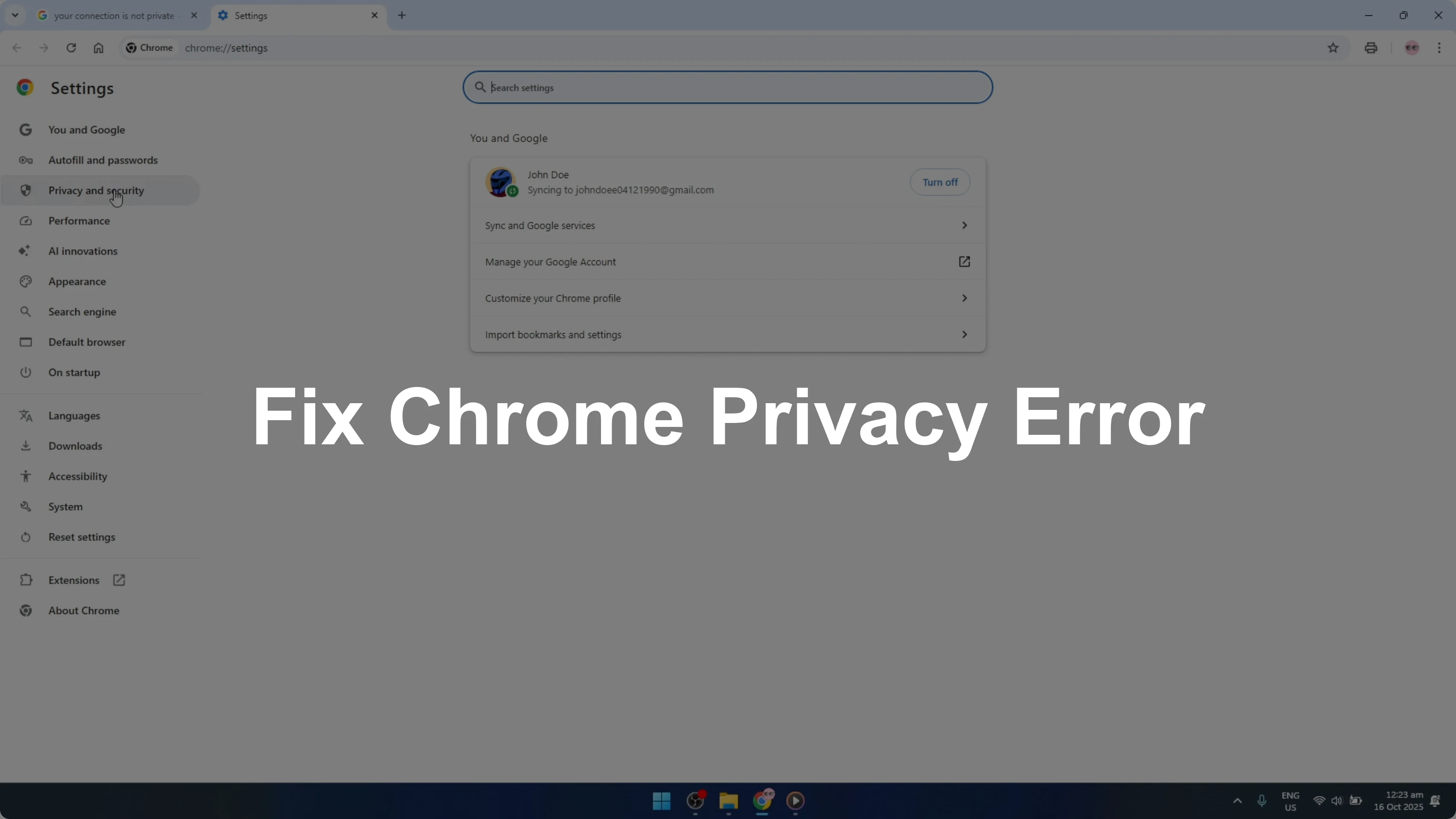 Step 2: Go to Privacy and Security — Fix “Your Connection is Not Private” Error on Google Chrome [2026 Guide]